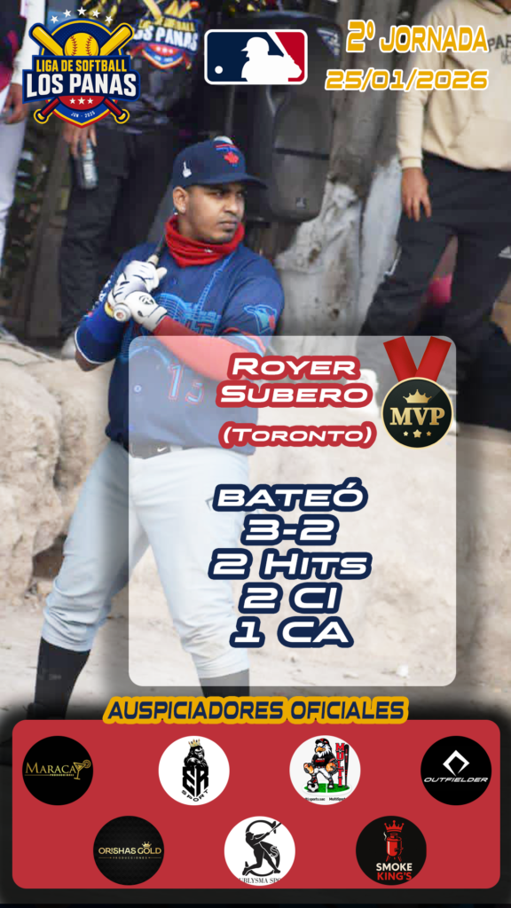 El diamante fue testigo de una actuación brillante de Royer Subero, quien se convirtió en la gran figura del equipo Toronto durante la jornada, liderando con carácter y efectividad una victoria clara frente al conjunto Guerrero.